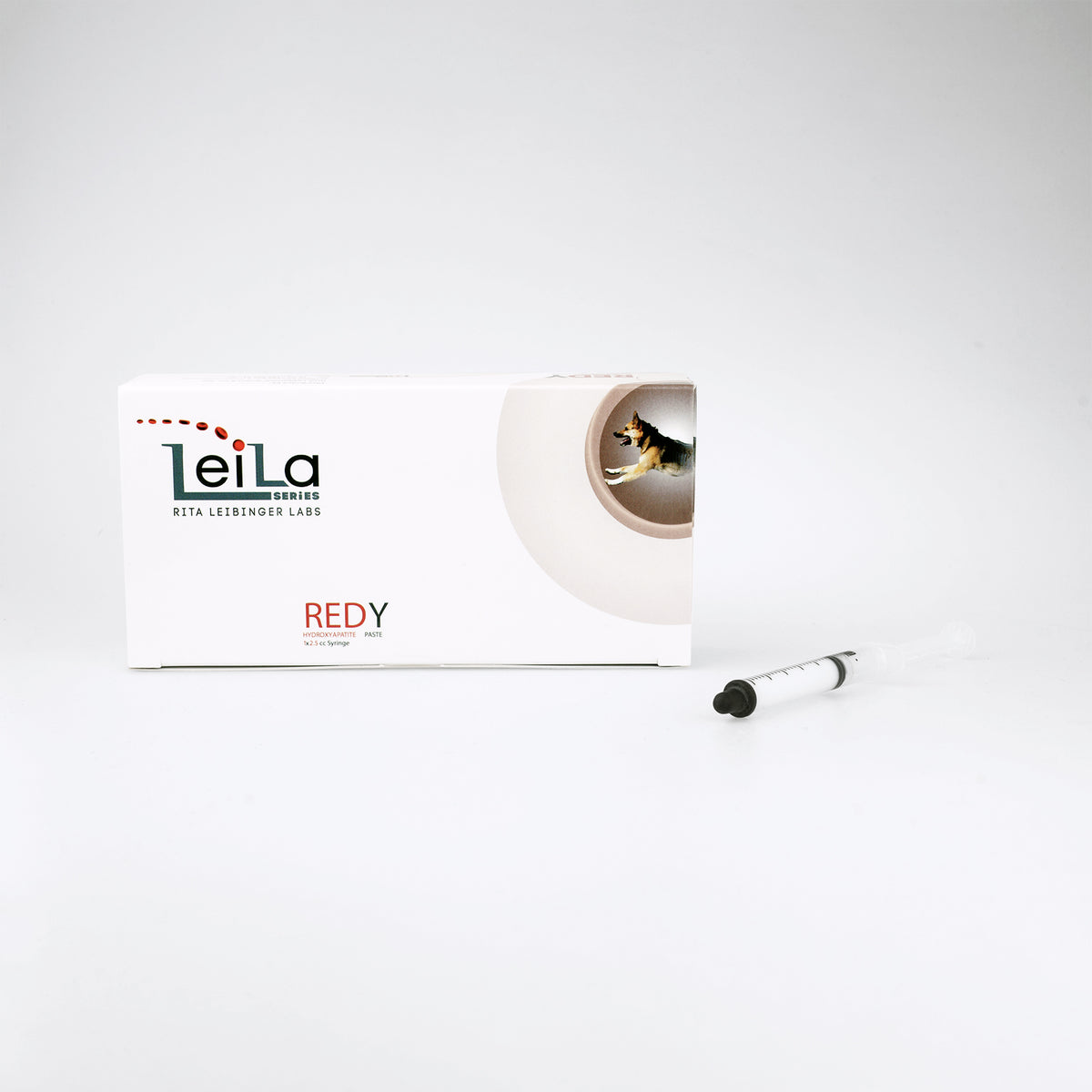 LeiLa REDY Hydroxyapatite Paste is provided in a ready-to-use syringe.