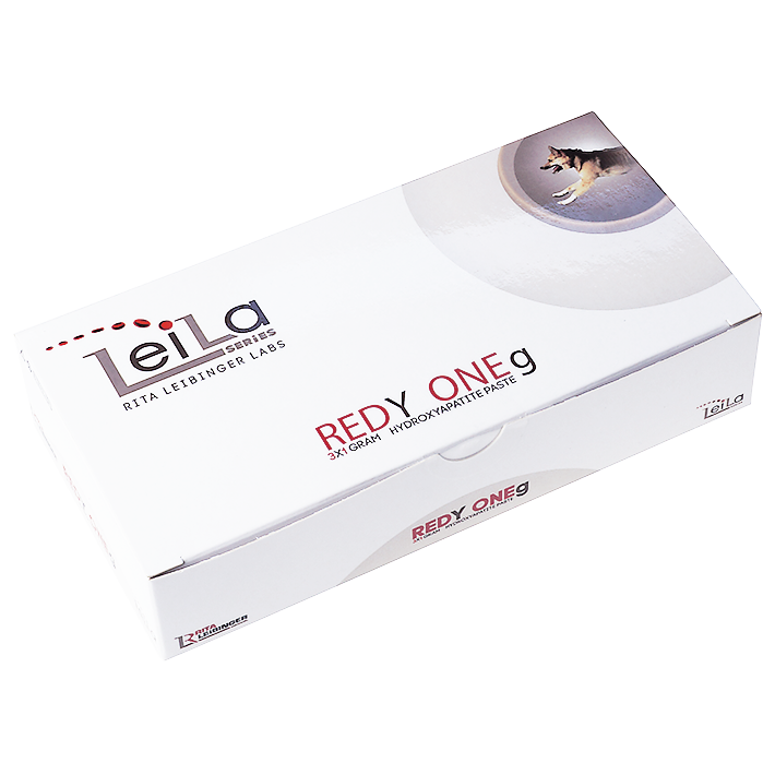 LeiLa REDY ONEg Hydroxyapatite Paste is a synthetic (Alloplast) ceramic, composed of a water-based nano-hydroxyapatite paste. It is resorbed and replaced by natural bone as the bone healing process occurs, and the paste can be molded to follow the natural contours of the bone.